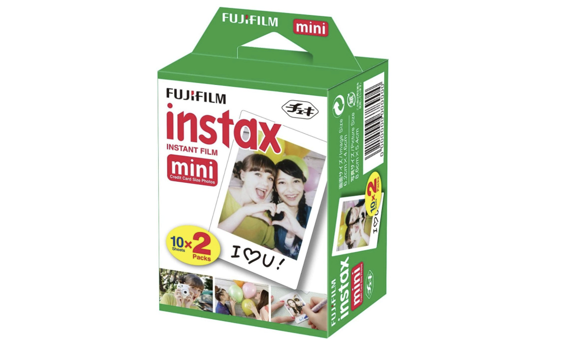 2 Packs de 10 unidades de película para cámaras Instax de Fuji. Incluye cajita de transporte.